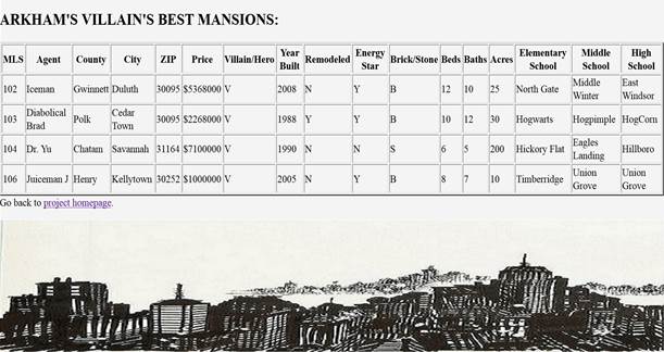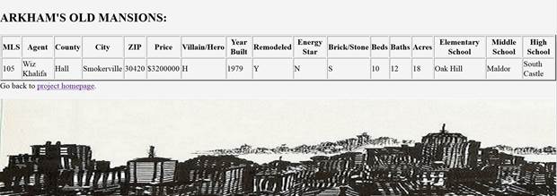 <h2>ARKHAM'S MANSIONS LISTED LOWEST TO HIGHEST PRICE:</h2>