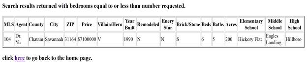 <h3>Search results returned with bedrooms equal to or less than number requested.</h3>